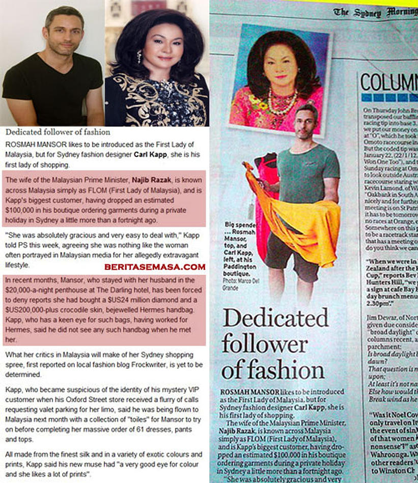 Laporan terbaru oleh Sydney Morning Herald tentang keborosan Rosmah