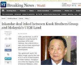 Akhbar Singapura dedahkan pemimpin UMNO jual tanah dengan harga rendah kepada Robert Kuok..